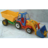 Traktor hoobadest liigutatava sahaga ja kallutav käru.