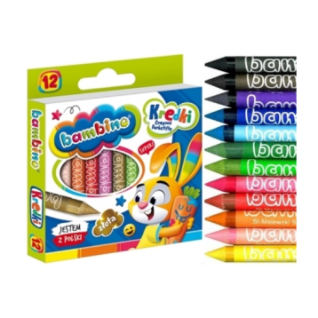 Bambino imelised värvikriidid. Valmistatud kaoliinisavist, mis suurendab oluliselt nende kasutusmugavust. Komplekt sisaldab: 12 eri värvi kriite. Pakendi mõõdud: 10x9x1cm.