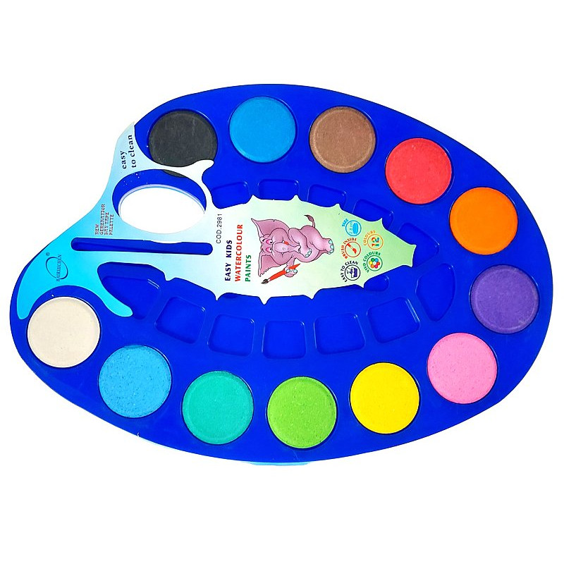 Palett koos akvarellvärvidega. Mõõdud 15,5x22cm.