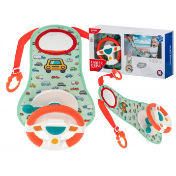 Helisid saab sisse ja välja lülitada mänguasja all olevast lülitist. Lastele meeldib matkida oma vanemaid erinevates elurollides! Muutke stressirohke teekond lõbusaks, mille jooksul teie väikelaps saab kopeerida teie käitumist oma miniroolil. Teie lapse turvalisus on meie prioriteet. Mänguasi on valmistatud suurima hoolega. Ilma teravate servade või eemaldatavate elementideta on see ideaalne reisikaaslane teie väikesele. Mänguasi kinnitatakse esiistme peatugede külge reguleeritavatele rihmadele kinnitatud plastrõngaste abil.