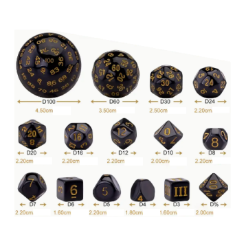 Komplektis erinevate tahkude arvuga 1,6-4,5cm täringud.