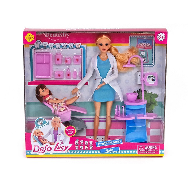 29cm ja 10cm liigestest painduvad nukud ja hambaarsti kabineti sisustus.