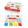 Komplektis on 4 värvi arvutuspulki, numbrid ja matemaatilised kaardid.