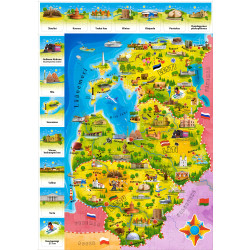 120 osaline kokkupandav puslepilt mõõtudega 40x28cm ja 28 osaline õpetlik puslemäng. Kaart ja puslemäng on eestikeelsed.